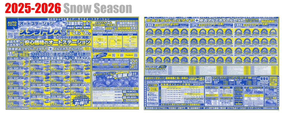 オートステーションは中古タイヤを中心に中古スタッドレスタイヤ、各社メーカー新品タイヤ、中古アルミホイール、